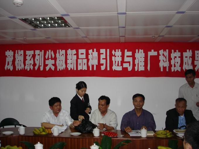 2005年3月23日,由海南省科学技术厅、海南省农业厅组织专家组对pa集团官网等单位共同完成的“茂椒系列尖椒新品种引进与推广”项目进行了现场验收。专家组通过现场考察与测产,听取项目主要负责人,pa集团官网入口林尤奋老师、林师森老师对该项目工作的汇报,并查阅有关材料,专家组认为:引种筛选出的茂椒四号等尖椒系列新品种,具有优质、抗病、高产、适应性强、耐储运等优点,平均亩产比传统品种保辣增产50%--60%,比较符合海南的生产实际,操作性强。在海南属首次,居国内先进水平。