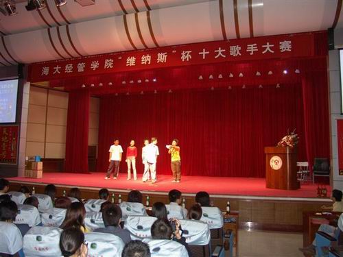 2004年4月1日晚7点,经济管理学院“维纳斯”杯十大歌手大赛在行政楼大报告厅隆重举行。报告厅座无虚席,学院学工办全体老师、校保卫处黄副处长、校学生处陈副处长以及各兄弟学院文娱部部长、团委学生干部以及400多名同学一起观看了这场音乐盛典。比赛还请到了校办郭祯老师、艺术学院马静、李玉洁、贺光辉、李颖、侯林栋、苏波等同学担任本届比赛的评委。