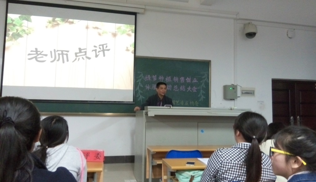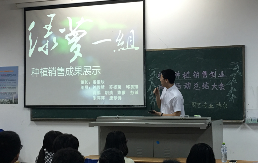 2016年3月26日,“绿萝种植与销售”创业体验活动总结大会在4-103举行,学院王珍副书记、园艺系于靖老师、曾教科老师、学工办李丹老师参加了总结大会。通过各小组PPT阐述活动过程与总结经验、评为提问等环节,并最终评出奖项。最后学院王珍副书记对整体活动进行了点评。王珍书记对活动进行了肯定,并鼓励同学们多参与专业实践、了解专业内容、深入专业学习。
