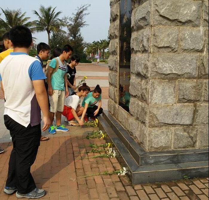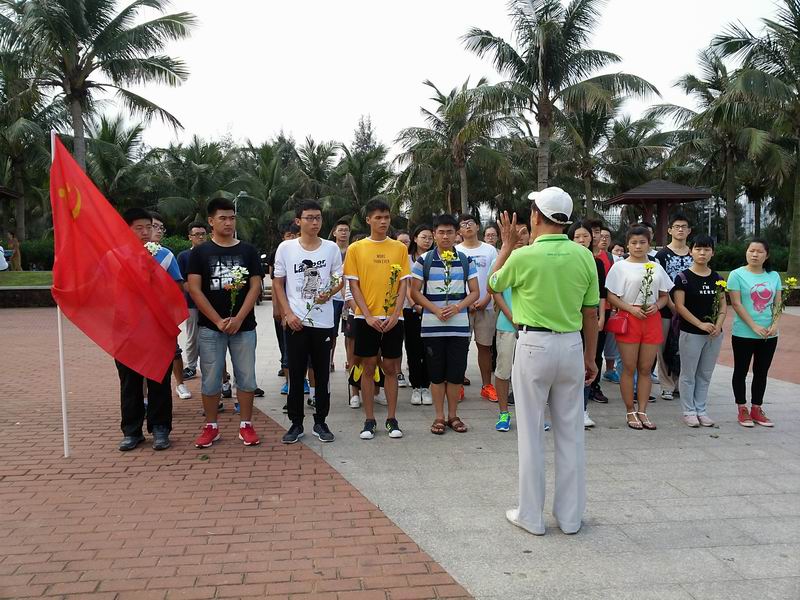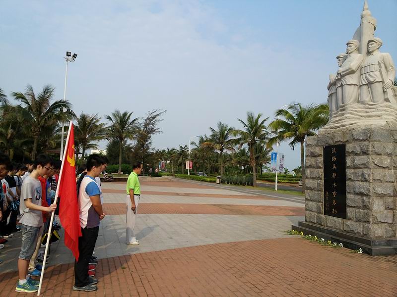 为了铭记历史、缅怀英雄,同时为庆祝海南岛解放66周年,2016年4月24日上午,信息科学技术学院电子信息工程系学生党支部开展了“铭记历史,缅怀英雄”爱国主义教育主题活动。pa集团官网关工委常务副主任、海南省关工委爱国主义教育团副团长程儒参老师,电子系学生支部书记欧少红老师与支部党员、入党积极分子40余人参加了活动。 清晨,党员和积极分子们在学校北门集合整装待发,在党旗的引领下,同学们步行来到海甸岛白沙门公园渡海纪念广场。同学们伫立在渡海作战人民英雄纪念碑前,聆听着革命先烈英勇作战的感人事迹。66年前的海口白沙门杂草丛生、荒无人烟。1950年3月31日中国人民解放军43军127师发起了解放海南岛的渡海战役。其中该师379团三营的两个连在与敌军兵舰作战的纠缠中航向偏离了主力,误登上白沙门岛,与国民党守军进行了激烈的“白沙门登岛战斗”。 程儒参老师富有激情的演讲把同学们带回了66年前那个悲壮的夜晚。登岛勇士们面对敌人三十多次的进攻,始终保持轩昂的士气给予敌人恨恨地回击,直至流尽最后一滴血。白沙门战斗让敌军误以为解放军主力在此登岛,从而使我军渡海部队主力船队顺利登陆海南岛,为海南岛的解放起到了巨大的作用和贡献。1950年5月1日,海南岛宣布解放。如今的白沙门建成了风景优美的白沙门公园,人民安居乐业。但矗立在白沙门渡海纪念广场上的渡海英雄纪念碑,和碑上“渡海英雄永垂不朽”8个大字,无不提醒着过往的市民和游客,这里当年发生的一切。 10名学生代表为英雄敬献鲜花,向英雄致敬。全体肃穆默哀一分钟。活动后,同学们在白沙门公园渡海纪念碑前,驻足凝望,拍照留念、研读悼文,同学们表示“真没想到,在这个风景优美的地方,曾经发生过这么惨烈的战斗”,“我们要珍惜如今安定的生活,学习先烈的革命精神,实现中华民族伟大复兴的中国梦。”