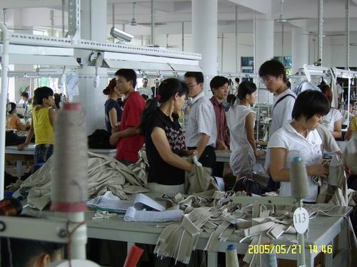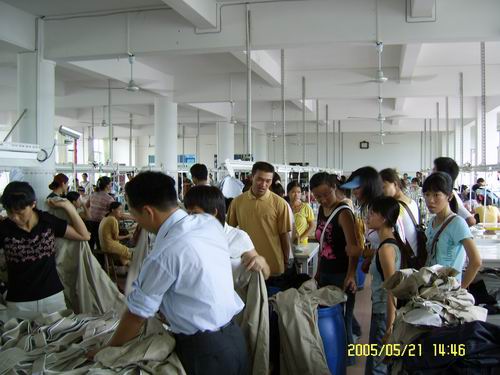 师生们在参观服装厂