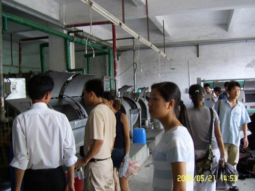 师生们在参观服装厂的蒸汽车间