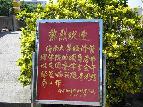 活动在热烈欢快的气氛中进行。首先,由双方学生会的主席介绍各自学生会的机构组成官能及其成员,互相增进了解与认识;随后两校的各相关部门及社团展开了相互交流,双方都毫不吝啬的将自己的工作方法及经验详细介绍给对方,共同讨论,吸取对方的优点,弥补己方的不足,共同进步,以便在今后的工作中更好为同学服务。在经验交流会之后,两校的同学又进行了才艺大比拼,献上了各自的歌舞表演,活跃了会场气氛。最后,在海南软件职业技术学院团委老师的带领下参观了学校的教学楼,办公室,学生活动场地等学校硬件设施。