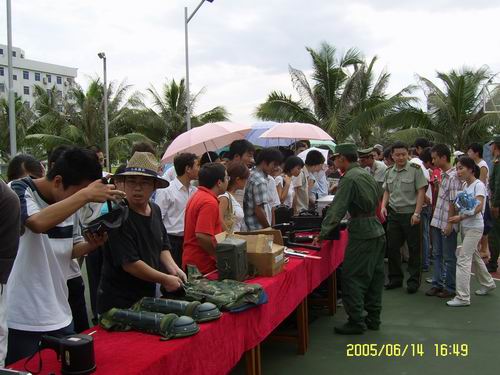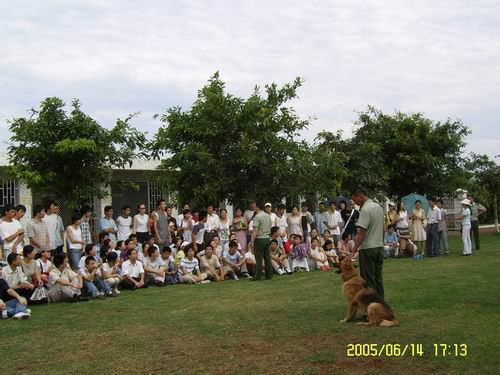 最后,学生党员到了和我院有11年共建的单位--海南武警三支队参观。在海南武警三支队赵副政委的带领下,我们参观了武警三支队的官兵宿舍、食堂、农业生产基地、武器库、武警反恐设备、警犬训练地。