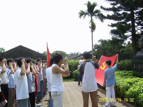 为了加强经济管理学院学生党员的先进性教育,弘扬爱国主义精神。6月14日下午,经济管理学院全体学生党员在学工办老师的带领下来到位于海口市云龙镇长泰村的冯白驹将军故居进行缅怀活动,纪念这位曾被周恩来同志誉为“琼崖人民的一面旗帜”的革命将领,重温冯白驹将军带领海南各族人民坚持长期艰苦武装斗争的历史,创造了“孤岛奋战,二十三年红旗不倒”的光辉业绩,并配合解放军渡海作战,解放了海南。全体学生党员被这样不屈不挠的英雄气概和爱国主义精神所感动,并在冯白驹将军像前,在光荣的党旗下进行入党宣誓仪式,表示要以冯白驹将军为榜样,学好知识将来报效祖国!