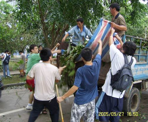 昨日凌晨在海南万宁登陆的“达维”号台风使海大校园内的绿化带遭到了严重破坏,校道上铺满了被风折断的树干树枝,这既破坏了校园环境,也给海大校内交通带来了极大不便。