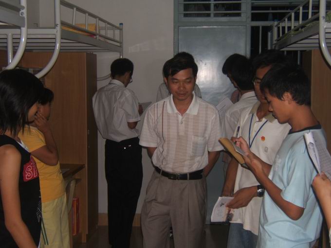 2005年10月26日晚,在生命科学与农学院党总支副书记王强的带领下,院团委书记何欢宝、学工办李丹老师以及院团委、学生会干部到各班级宿舍开展卫生检查和文明行为宣传活动。