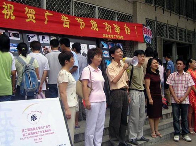 期待已久的海南省第二届大学生广告节终于在2006年5月20日中午拉开了帷幕。十二点开幕式正式开始。在一片热烈的掌声中,广告协会会长长李东绪主持并宣布了整个广告节的流程,人文传播学院党总支刘雯副书记宣布广告节正式开始。校团委符成彦书记就开幕式现场展出的作品发表精彩的讲话。同时人文传播学院焦勇勤副院长,广告系主任王老师、学工办孙老师也应邀参加了开幕式。