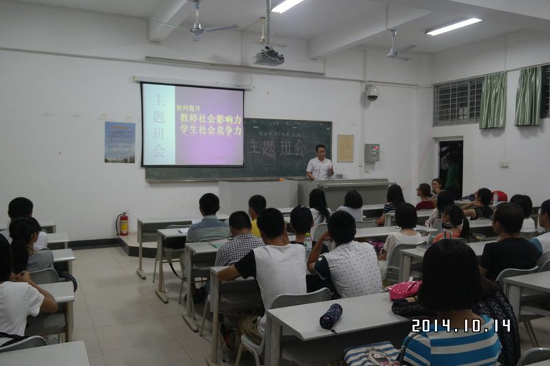 2014年10月14日晚,2014级农业资源与环境二班在3-103教室举行了以“如何提升教师的社会影响力和学生的社会竞争力”为主题的班会。班会由二班班长马睿主持,参加此次班会的有班主任邓万刚老师和资环二班全体同学。 班会在轻松愉快的气氛中拉开序幕,在班长切入主题后,班主任邓万刚老师上台发言。班主任首先说了开学一个月的情况,并希望同学们能更好地融入新的生活,安排好自己的时间,之后便介绍了如何提升“两个力”办学理念。他认为在大学的学习生活中,老师主要做引导工作,养成学生学会探索的精神。而在提升学生的社会竞争力方面,需要我们学生树立准确的三观,同时班主任还提出刘书记将竞争力分为“思想力”、“意志力”、“亲和力”、“学习力”、“适应力”、“实践力”和“创造力”七个方面的概念。最后他提出了希望我们提高专业知识水平,要有吃苦耐劳的精神,处理好学习、生活、交往问题,并在四年里锻炼自己,最终提升我们的社会竞争力的殷切期望。 在热烈的掌声过后,班长向同学们介绍了孔子、蔡元培、俞敏洪等名师对社会的影响力以及胡锦涛、马云等知名学生在学习过程中学校对他们人生的影响和他们到了社会上的竞争力。之后便是学生代表发言。团支书上台向我们介绍了这次学习会的内容和主要目标,接下来是大家积极讨论,思考什么是“社会影响力”和“社会竞争力”以及分小组讨论如何提升两个力。 最后班主任对此次班会作了总结。提升学生的社会竞争力需要我们在大学生活中明确自己的定位,有目标,发展特长,有创新意识和洞察力,有吃苦耐劳的精神,学会思考,树立正确的价值观,方可在多元化的社会中找到自己的立足之地。教师对于社会的影响力则不仅仅只是教书,责任感和其人格魅力会深深影响学子,两个力要相辅相成才能对社会作出更大的贡献。 同学们积极热切的态度让此次班会轻松顺利的进行下去,我们也更深层次的了解了社会影响力和社会竞争力的重要性,同时作为大学生,为了提升自己将来的社会竞争力,也进一步明确了目标和方向,相信同学们在今后的大学生涯里一定会更加有目标有计划而有成就。//www.hainanu.edu.cn