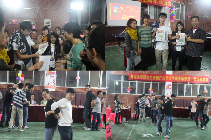 联谊会在歌伴舞《风吹麦浪》中拉开序幕,曼妙的舞步、轻柔的歌声将全体同学们引入了一片恬静而又浪漫的海洋;农学院邓德力同学的一曲《一生有你》诠释着研究生同学之间深厚的友情与爱意,深深打动着在场的观众;农学院研究生会干部们带来的舞蹈《小苹果》瞬间掀起联谊会的高潮,表达出研究生学子昂扬的激情与青春的活力;12级研究生刘茜、高寒、李平、黄旭带来的歌曲串烧《等待爱情》与13级研究生崔学强、马晓雯带来的情歌对唱,苦涩中渗透着甜蜜、感伤中体味着幸福,述说着研究生最美好的爱情故事;13级研究生同学演绎的小品《研途寻爱辩论赛》唇枪舌战、妙语连珠,展现出研究生的机智与才华,幽默风趣的语言不时引来全场的笑声与喝彩;来自泰国的留学生Anwaut、Kanjana为同学们献上互动游戏《Thai Game》,点燃出联谊会的激情,引发全场大狂欢;农学院研究生第六党支部全体党员的一首合唱《我相信》表达了广大学子奔涌的生命热情和昂扬的青春风貌。