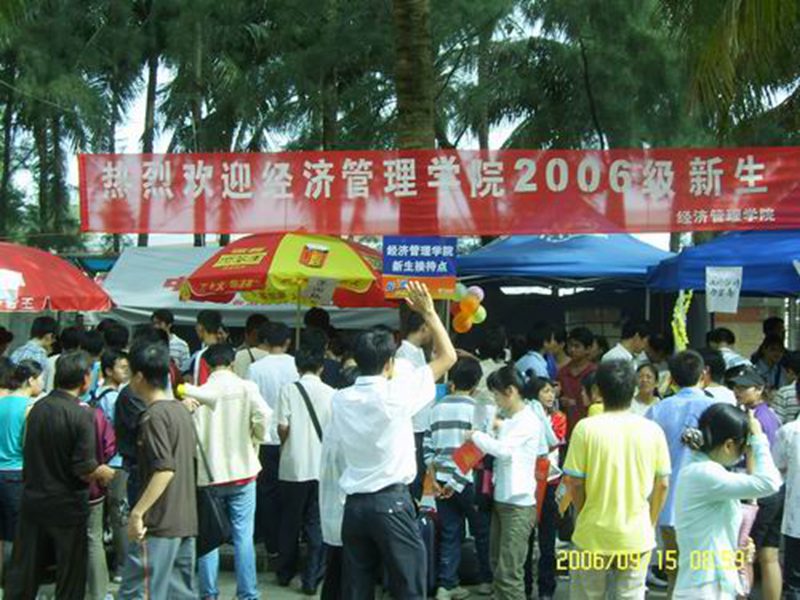 金秋送爽,9月15日的校园沐浴在一片和煦的椰风中,经济管理学院开始了紧张的迎新工作。今年我院新生人数众多,迎新工作繁重,为了将任务保质保量完成,在院团委和学工办的指导下,学生会和各班志愿者密切配合,14日将第一田径场外大本营布置完备,同时提前通知新生办理有关事宜,15日早晨8点便准时开始进行新生的报到注册登记工作。