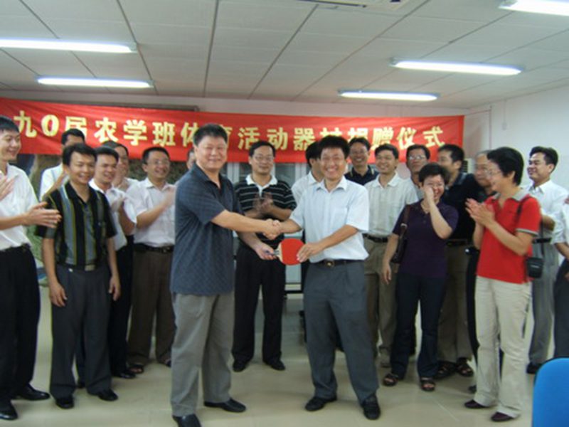 10月21日上午,90届农学班校友来到学院,向学院捐赠了一套体育器材,希望老师们课余时间能有机会多锻炼身体,增强体质,多为海南的教育事业做贡献。吴蔚东副院长代表学院接受了捐赠,并向校友们介绍了学校、学院近几年的发展情况。捐赠仪式后,师生们还在学院旁植下三棵剌桐树,留做纪念。随后,校友们还参观了学院实验大楼和校园,并回到当年住过的宿舍参观。