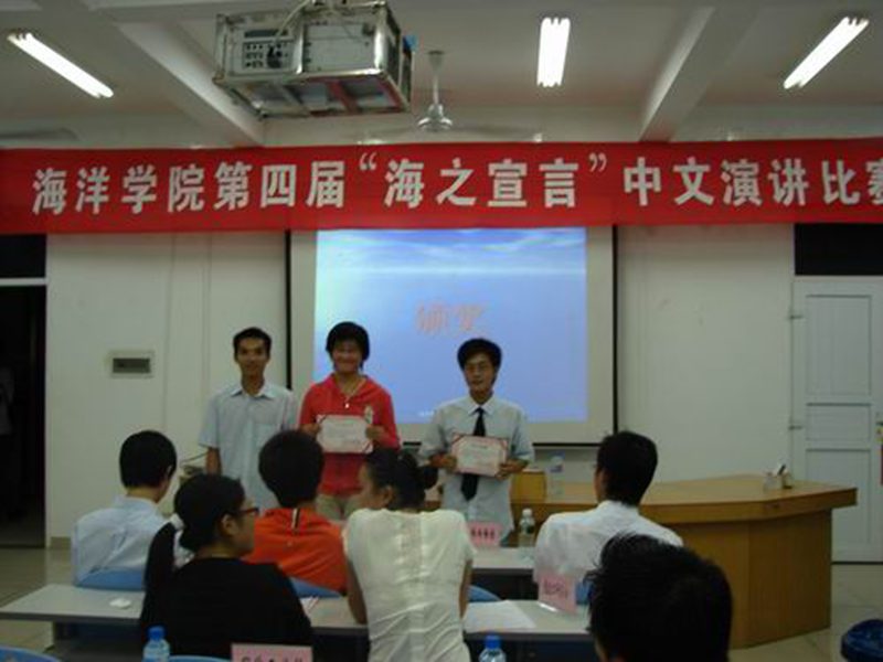 他们青春年少,因此他们满怀热情;他们青春年少,因此他们壮志踌躇;他们青春年少,因此他们开怀畅谈,也因此他们走上了中文演讲比赛的绚丽舞台。11月25日晚7:30海洋学院第四届“海之宣言”中文演讲比赛在海洋楼报告厅隆重举行。参赛的是经过各班级层层选拔出的21名优秀选手。与赛评委有pa集团官网校团委委员林琛、广播站站长张江舟、广播站文学组组长吕天罡、原人文传播学院学习部部长董丽娟以及人文传播学院中文演讲比赛一等奖获得者李文敏,出席的嘉宾还有院团委书记王林桂老师。比赛由海洋学院学习部部长殷鑫主持。 此次比赛异常激烈。初赛阶段,选手们紧扣“践行荣辱观,构建和谐海大”这一主题,发散思维,用青春激扬的演讲展示了当代大学生的良好精神风貌。“少年强,则国强……”“和谐的海大摒弃那些见利忘义、损人利己、好逸恶劳的人……”“当我们匆匆而过时,不要遗忘了和谐的精彩……”等激情昂扬的演讲博得了现场同学的阵阵掌声。接着,有9位选手成功晋级复赛,进行即兴演讲。在这个综合能力要求极高的环节中,9位优秀选手在短短的五分钟准备过后,以其敏锐的思维及强有力的语言组织能力各作了一番精彩的演讲,使得现场掌声不断,将比赛推向了高潮。 此次活动不仅让同学们重新温习了社会主义荣辱观的理论知识,更重要的是将社会主义荣辱观教育与创建优良学风、校风,构建和谐校园紧密结合,推动了整个校园文化的清新发展!
