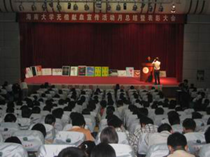 为了发扬甘于奉献的优良传统,培养高尚道义,促进高校无偿献血工作顺利开展,为了宣传普及无偿献血及血液知识、《中华人民共和国献血法》,促进血液正常供给,在海南省血液中心的大力支持下,学校于十一月组织开展了为期一个月的“关爱生命,无偿献血”宣传活动。在活动月中,陆续开展了无偿献血先进个人报告会和无偿献血知识讲座、“关爱生命,无偿献血”主题公益广告大赛、无偿献血及血液知识展、无偿献血与血液知识问卷调查、无偿献血签名活动以及组织现场无偿献血等活动。这些活动得到了广大同学的热情支持和积极参与。在活动月中,热情参与无偿献血的同学达815名,献血总量超过22万毫升。宣传活动的开展促进了无偿献血及血液知识的普及,使同学们增进了对无偿献血的了解,增强了他们社会责任感和义务感,激发了他们参与无偿献血的积极性,取得了良好的预期宣传效果。