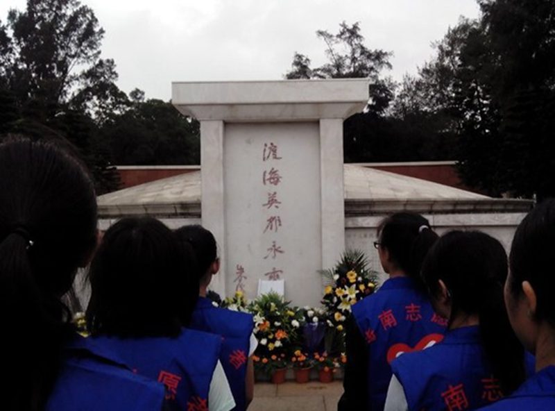 早上9点,我院志愿者们到达烈士陵园,整顿好队伍后,集体向烈士墓碑三鞠躬并默哀一分钟,表达对革命先辈的悼念与缅怀。随后志愿者们依次为烈士们献上满载崇敬之意的白菊花,并听取讲解员介绍的革命烈士英雄事迹。随着讲解员的描述,一幅幅感人的画面呈现在大家的脑海里,大家仿佛看到了在血雨腥风的战争岁月,中华民族的优秀儿女们为了解放海南岛,不惜抛头颅,洒热血的场景,烈士虽已逝去,但他们将永远活在我们的心中,而他们为革命而英勇牺牲的事迹也将永留青史。中午12点扫墓活动顺利结束。