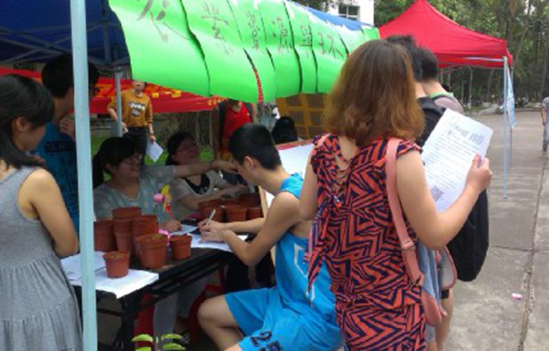 虽然天气炎热,但是同学们的热情不减。活动刚开始就有不少同学来询问有关情况并认领种子。类别繁多的种子令人眼花缭乱,同学们参照协会制做的“植宠图谱”仔细挑选、领取喜欢的种子,登记信息后还免费领取花盆,仅半个小时,所有花种就已经发放完毕。活动期间,每一位协会成员都耐心的为同学们讲解各种植物的种植方法以及注意事项,分发花盆,并且为同学们提供了一些由椰糠、黏土和沙土成比例配置的土壤,方便同学们的种植。为了让同学们更好地学习交流,协会还邀请所有种子领养者加入“阳台菜园”QQ群,帮助大家解决疑问。
