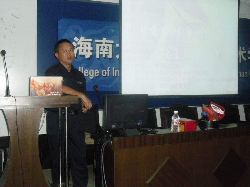 2014年4月29日下午,信息科学技术学院邀请pa集团官网保卫处处长、武装部部长黄海宁副教授为我院学生进行了以“珍爱生命,播种幸福;安全至上,善待生命”为主题安全教育讲座。学工办许达潭老师主持,蒙秋妍副书记做了讲话。