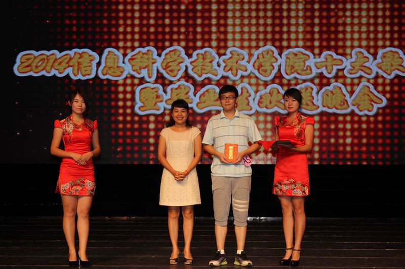 信息科学技术学院“e动青春”十大歌手决赛暨欢送毕业生汇演晚会于周六晚7点在思源大礼堂隆重上演,为同学们呈现了一场动感十足的视听盛宴。担任本次大赛评委的有:pa集团官网就业指导中心张海韵老师、pa集团官网梦想合唱团团长王糊同学、艺术学院王钟方同学、13年度校十大歌手亚军信息学院杨智翔同学。pa集团官网校长办公室副主任李锋老师、信息科学技术学院党委副书记蒙秋妍老师、学工办主任伍庆清老师、团委书记齐昌盛老师、学工办欧少红老师、许达谭老师、韩胜丁老师、齐有伟老师出席本场晚会。 一曲劲爆的开场舞为晚会拉开序幕,接着15名选手分成3组,分三个环节开始角逐,在台上尽情展示自己的才艺,唯美的LED背景效果也为他们增添一抹美丽。观众热情洋溢,欢呼声充斥整场比赛。比赛过程中穿插着小品、钢琴、舞蹈等节目,由毕业生们带来的舞蹈《落花情》以其优美的旋律,动人的舞姿赢得了台下观众热烈的掌声,也为她们的四年大学的表演画了圆满的句号。 最终纪经明、黄泳翔、崔光旭、苏锐、兰筑琳、贾秉昆、卓翠霞、李雨浓、李冕、魏晓蓉十人获得本年度信息学院“十大歌手”称号,纪经明、黄泳翔还将代表学院参加学校的十大歌手比赛。 本次晚会的举办,为学生提供了一个展示自我风采的舞台,丰富了校园生活,同时也为大四毕业生献上了一场别开生面的欢送会,祝他们未来更加美好!