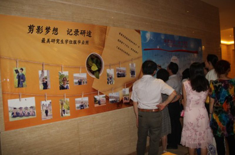 随后,毕业生们与老师相互交流,表达对母校的感恩、对导师的感谢,依依惜别之情萦绕心间。期间,领导、导师、毕业生们纷纷走向毕业纪念墙,写下自己的寄语;大家通过视频回顾了毕业生一起走过的一段段美好时光,温馨的视频也让大家沉浸在浓浓的师生情、母校情中。韶光易逝,嘉年难再,离别在即,唯有道声珍重。相信浓浓的情谊会一直伴随着2014届研究生走好接下来的人生之路,也祝愿2014届研究生幸福快乐,前程似锦!