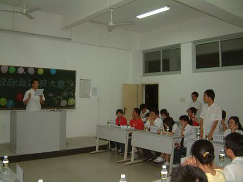 4月14日晚,伴着《爱的奉献》悠扬的乐曲,我院“献血杯”无偿献血知识大赛在3—104教室隆重举行。学院本科生第二党支部书记李辉、赵士刚同学、学生会主席陈婷婷、邓小平理论与“三个代表”重要思想研究学会副会长范煜和团委宣传部部长周方担任了评委。 参赛队分别是由05、06级各班组成的“红心之源”、“Love之源”、“血聚之源”、“O型血”、“红色飞扬”、“献血天使”六个代表队。比赛分为必答题、抢答题和风险题三个环节,经过各队沉着应答、激烈竞争,最终,05行政管理1班“O型血”代表队获第一名、06行政管理1班“献血天使”代表队获第二名、05行政管理2班“红色飞扬”代表队获第三名。