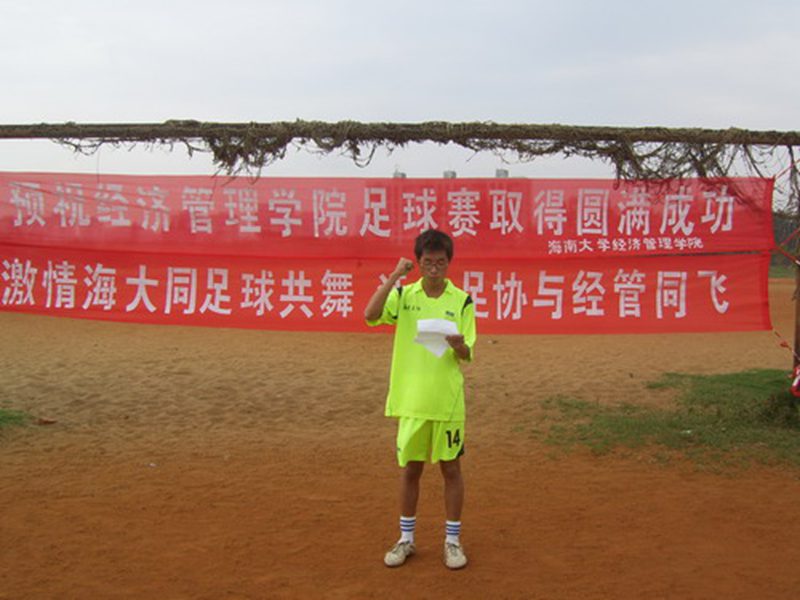 2007年4月14日下午2:40,为了展现健康风貌,加强团队合作,丰富业余生活,树立文明形象,经管学院一年一度的足球联赛于第二田径场隆重开幕。学工办吴新主任,学生会主席团出席本次开幕式。本次联赛由经管学院团委、学生会主办,经管学院学生会体育部承办,海大足协协办。