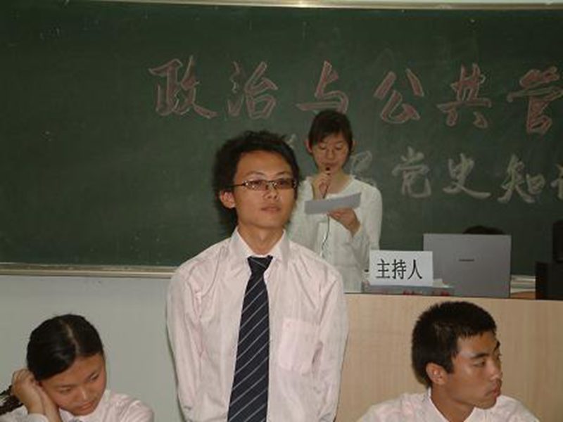 5月26日晚,3-109教室座无虚席。我院第二届党史知识竞赛在这里隆重举行。全院本科生党员、入党积极分子参加了这次活动。院团委书记邢红斌老师、本科生第二党支部书记李辉、赵士刚同学出席了此次活动并担任评委。活动由汪玉姣同学担任。 伴着雄壮的《国际歌》,知识竞赛拉开了帷幕。此次比赛共有7支代表队参赛队。活动分为四个环节:必答题、连续答题、抢答题、风险题,采取淘汰制。 这是一场智慧的碰撞、理论学识功底的较量。比赛中有深思熟虑、有你争我强、有挑战勇气。经过激烈紧张的比赛,最终,由党员与预备党员组成的“政之佳”代表队力克群雄,夺得冠军;05级思想政治教育班的“思想者”代表队位居亚军,06级行政管理2班“红色先锋”代表队获得季军。 此次活动是在第一届党史知识竞赛不断改进完善的基础上举办的,取得了圆满成功。邢老师对这次活动给予了充分肯定,赞扬活动准备充分、选手的精彩表现以及活动的内容和形式,强调要不断创新党课培训的内容和形式,将类似活动继续进行下去。