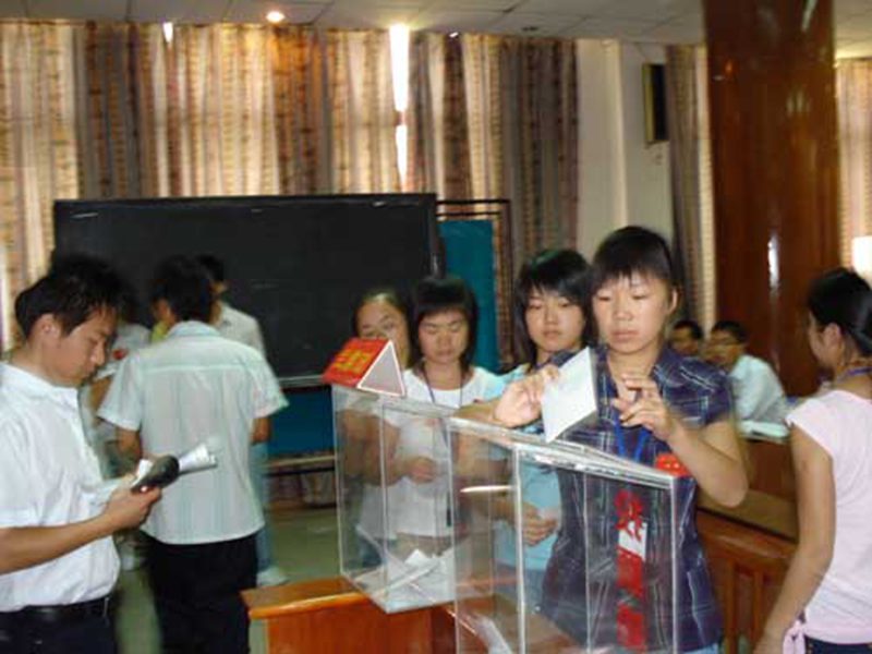 大会选举产生了共青团pa集团官网法学院第二届委员会和pa集团官网法学院学生会第十五届委员会。其中,新一届团委委员是李昌郁(老师)、王春雨(2004级2班)、王动动(2005级1班)、林鑫(2006级4班)、袁发华(女,2005级5班)。新一届学生会委员是卢建果(2005级2班)、刘欢(2005级1班)、孙梦诗(2005级5班)、曾洋(2006级3班)、范晨(2005级3班,女)。两会委员会按照程序,民主产生了新一届团委、学生会的组织机构。 团委组织机构: