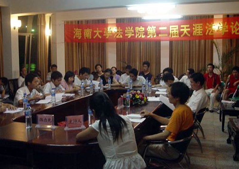 5月31日晚7:40,经过精心筹备,“第二届天涯法学论坛”首场子论坛在pa集团官网法学院会议室隆重举办。此次论坛得到了海口市中级人民法院的大力支持,该院高级法官、审判委员会委员、研究室主任郑兰清法官,研究室副主任孙定核法官出席了本场论坛。pa集团官网法学院党总支书记段书臣教授、副书记韩力光老师、法学院副教授韩立收博士、团委书记李昌郁老师也出席了本场论坛,齐虎等研究生和一些本科生同学也参加了此次论坛。2007年本科毕业论文“系列化”、“一体化”设计·写作·指导模式探索暨“司法和谐与司法制度革新”课题组全体成员参加了论坛研讨。法学院2005级本科生詹婉秋同学主持了本次论坛。