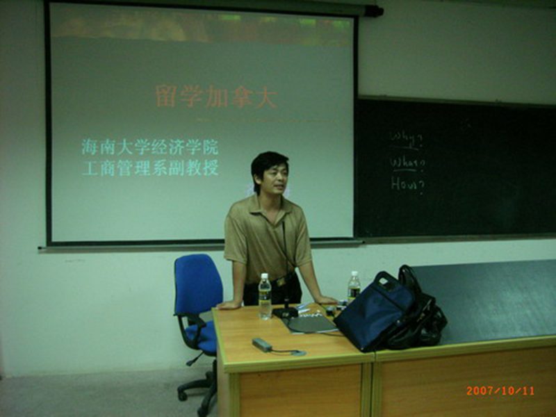 经济学院求知论坛系列讲座于2007年10月11日晚如期举行。由于参加讲座的学生很多,整个2—208教室座无虚席。经济学院院长黄景贵教授、副院长李仁君教授、工商管理系齐晓梅副教授出席了本次讲座。