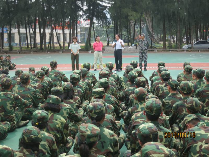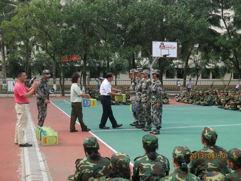 9月10日上午9时,杜文才院长、陈明宝书记前往军训场地向我院第十九、二十中队军训教官、带队老师和参训学生详细询问军训情况,同时对教官的辛苦工作表示衷心感谢,对坚守岗位的带队老师和刻苦训练的学生表示亲切慰问。 上午8:30,2013级全体信息学子集合完毕,他们身穿绿色迷彩军服,精神抖擞,蓄势待发。在训练场,学院领导检阅了受训学生方阵,与军训教官进行了亲切的交流,并向他们了解学生的训练情况。杜文才院长在发言中向辛勤付出的教官表示衷心的感谢和诚挚的问候,同时充分肯定了受训学生发扬不怕苦、不怕累的精神,训练时间不长,进步快。陈明宝书记勉励同学们从现在起要学会独立生活、学习,克服困难,刻苦训练,磨练意志,不当逃兵不退缩,努力完成军训任务。他强调各位新生应让自己在军训这堂课中得到更好的锻炼和考验,为今后的大学生活磨练坚强意志,同时也希望各位教官和辅导员老师要切实关心学生的身体和思想状况,确保军训工作圆满完成。 最后,陈明宝书记和杜文才院长代表学院为军训教官及新生发放慰问品,学院领导的亲切慰问让同学们倍受鼓舞。