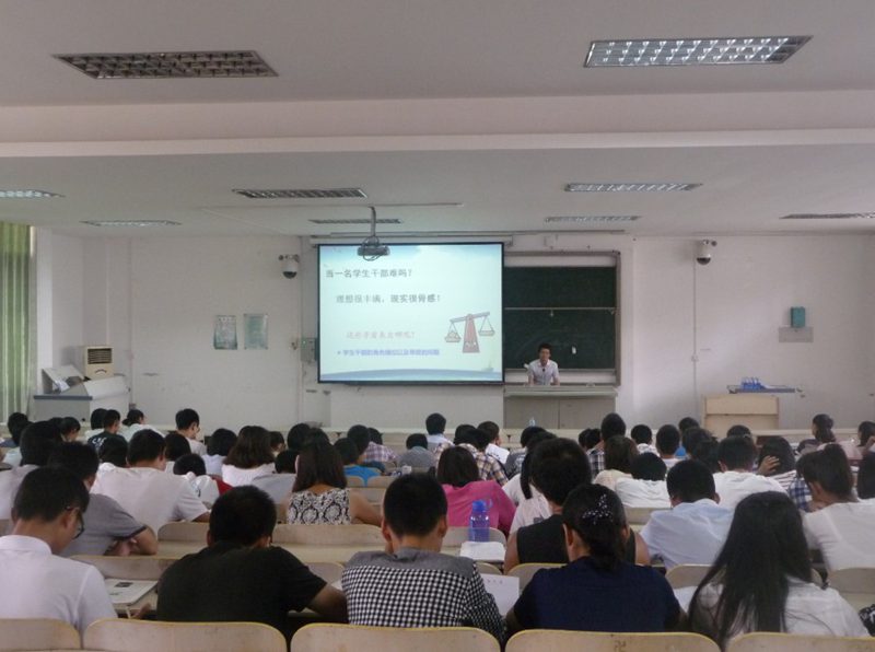 刘勇勤老师以《学生干部的角色定位与工作态度》为主题进行了本次培训的第一讲,他首先从“什么是学生干部”和“学是干部具备的工作心态”两个方面向学员们分析了怎样做一名优秀的大学生干部。他指出作为学生干部,我们要按本色做人、按角色做事、按特色定位。只有明确了自身的定位,调整好工作心态,我们才能成为一名优秀的学生干部。最后他用一个红与黑的互动游戏让学员深刻理解了合作双赢的重要性。