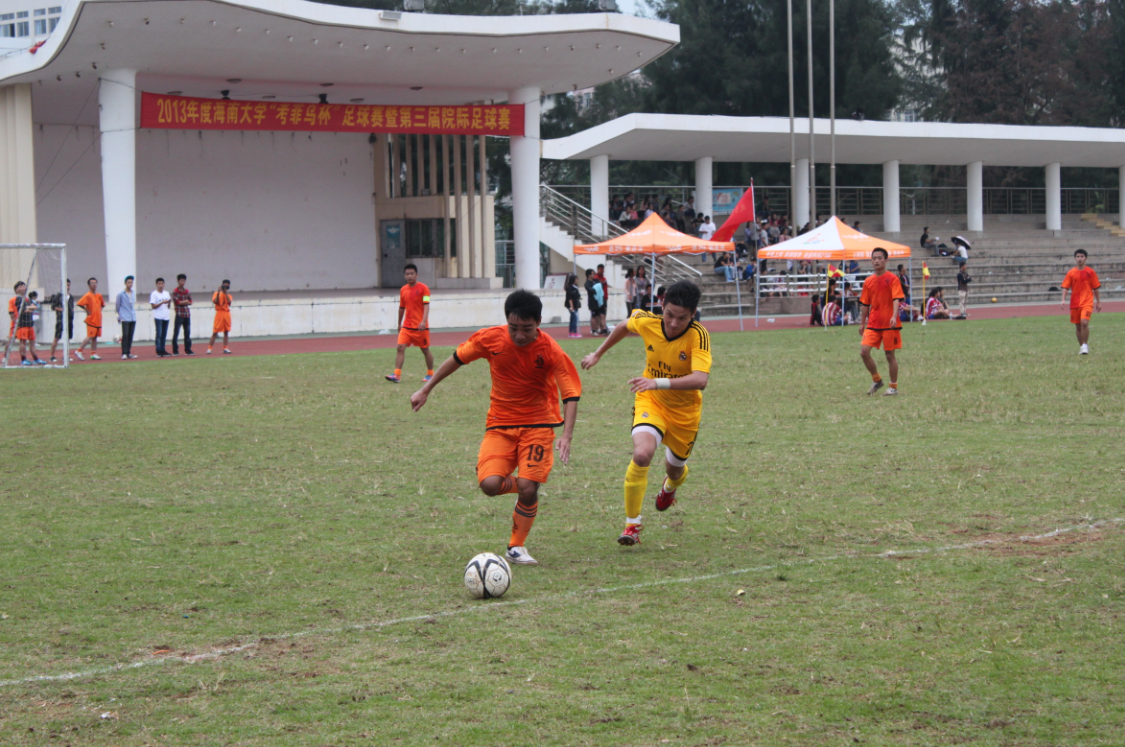 裁判一声哨响,比赛正式开始,上半场双方都展开了凌厉的攻势,农学院足球队员细腻的脚法,精妙的配合,快速的进攻,给机电学院造成很大的威胁,开场十五分钟,农学院邓彪龙同学以一记精彩绝伦的头球打破僵局,率先进球,上半场农学院1比0暂时领先。下半场比赛开始,机电学院队员很快调整心态,改变战略队形,进行反攻,最终进得一球。比赛最终以1:1结束,农学院以小组第一的姿态闯进“院际杯”足球赛八强。