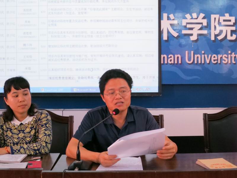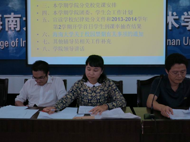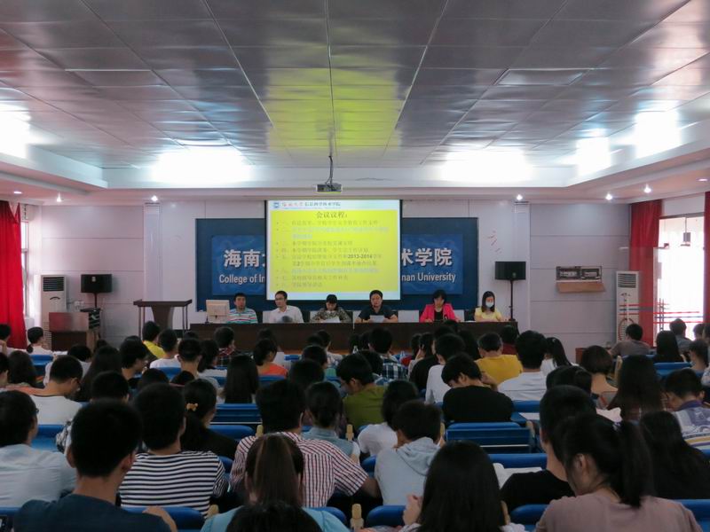 2014年3月18日下午16:30,我院在一楼报告厅召开了2013-2014学年第二学期学生干部大会,院党委副书记、学工办全体老师、院级和班级团学干部共170人参加了会议。会议由院团委书记齐昌盛主持。会议主要围绕新学期学校学生工作的要点:安全警示教育、学生宿舍卫生、校风校纪教育、学风建设等主题进行。 学工办伍庆清主任首先传达了海南省和学校学生安全教育工作文件,他向干部们介绍了新学期的学生工作重点:一、强调安全无小事,平时生活中多注意身边的安全隐患,外出实习交通安全、饮食安全等事项作了强调。二、加强宿舍卫生、安全用电管理,部署了本学期宿舍排查工作,特别列出了班级自查、学院检查的时间表。要求全体班干本着珍爱生命、远离危险的精神理念,深入自查、排除本班宿舍存在的各种隐患,确保同学的生命与财产安全。三、公布了我院“学风建设我先行”班级项目立项结果,共17个班级的16个项目获批立项,不少班级的项目内容新颖,贴近大学生实际,有利于促进学风建设。 会上,团委副书记高山布置了本学期院团委、学生会工作,为学生干部们大致说明了本学期开展的常规工作、特色活动、志愿者服务等工作。本学期团学工作本着“以人为本”的原则进行,开展活动前充分征求学生意见,根据同学们感兴趣的项目开展活动,希望能够提高同学们活动参与积极性。 随后,许达潭老师公布了本学期开学首日学生到课率抽查结果,宣读了学校近期有关学生纪律处分的决定,涉及宿舍管理、旷课处分、打架斗殴等,并提出干部们必须增强素质,正确处理同学之间的关系,严格自律,养成良好的纪律作风。欧少红老师简明扼要地布置了本学期学院分党校党课安排。韩胜丁老师宣读了pa集团官网关于校园禁烟有关事项的通知。 蒙秋妍副书记在最后做了总结发言。她对工作中付出大量汗水的学生干部表示衷心的感谢,要求学生干部以身作则,积极配合学院做好新学期的学生安全、学风建设工作。特别强调学生干部要借鉴好群众路线教育实践活动的经验,牢固树立服务理念,作好老师和学生之间的沟通桥梁,发挥示范带头作用,为同学们做好表率。相信各位学生干部能在新的一年里鼓足干劲、力争上游,将学院的学生工作推向新的高潮。//www.hainanu.edu.cn
