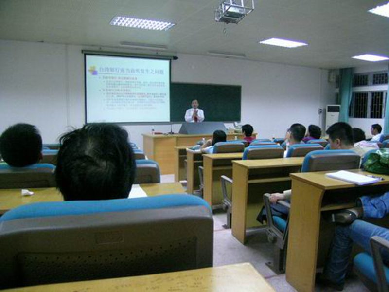 随后,刘荣辉董事开始了讲座,他首先从台湾银行业之发展、银行业当前所发生之问题、银行产业风险等几个方面进行分析介绍,分别与国内的银行进行了相互对比,从中分析了各自的优点与不足之处,以及改进的方法与措施。