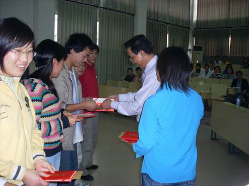 接下来进行了“彩能”奖学金的颁奖典礼,陈董事作为颁奖嘉宾为10名优秀学生颁发了奖学金,为18名贫困生颁发了助学金,并热情的与他们合影留念。