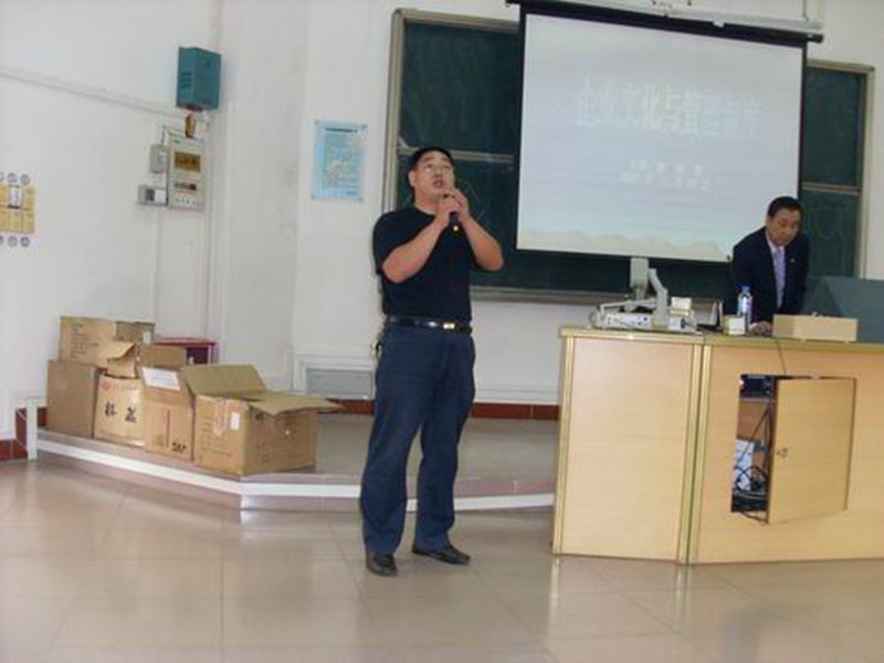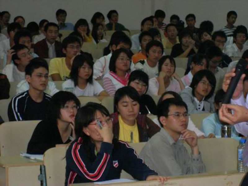 在一片热烈的掌声中,陈晓晖董事以他特有的风趣和幽默开始了此次讲座,主要是针对企业文化与管理制度的剖析,在讲坐的过程中他更为细致的谈到管理与企业文化的关系和文化与制度的关系,并举出一些鲜活的例子来与大家共同分享他的经验。讲座持续了近3小时,但大家依然热情高涨,笑声、掌声不断,不少学生还踊跃提问,使整个会场呈现出轻松、活跃的气氛。