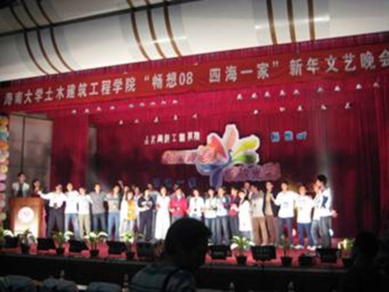 2008年1月4日,土木建筑工程学院“畅想08,四海一家”新年文艺晚会顺利举行。参加此次晚会的嘉宾有学院党总支黄玉端书记,韩建刚副院长,出席晚会的还有学院李培红、李艳、耿凤奎、陶锋、詹达夫、冯红芳、周邦华等老师,以及学院全体学生。 7:40,晚会在激昂的摇滚乐中拉开了序幕,来自07土木建筑的四位同学将激情撒满了整个会场,接着黄玉端书记为晚会致辞。他说,07年注定是不平凡的一年,随着原pa集团官网与华南热带农业大学的合并,土木建筑工程学院迎着新的改革体制应运而生,在08年,中国将以其全新的面貌迎接世界瞩目的目光,在新的形势下,土木建筑学院也将加深教育体制的改革,以崭新面貌迎接新一届土木学子。其后,来自不同学院和专业的同学为现场的观众带来了精彩的表演:青春舞协的四位演员用他们优美的身姿诠释着青春的动感旋律,小品《实话实说》为在场的观众讲述了一对校园恋人的点点滴滴,短剧《唐伯虎点秋香》在古典的事迹中融入现代气息,为晚会增加了不少趣味,歌剧《如果爱》用诗一般的语言为大家讲述了一段凄美的爱情故事,歌曲《我最闪亮》更是将晚会带入高潮。整场晚会精彩节目不断,高潮迭起,现场呼声不断。 最后,在团委学生会所有干部的合唱《相亲相爱一家人》中,晚会落下了帷幕。