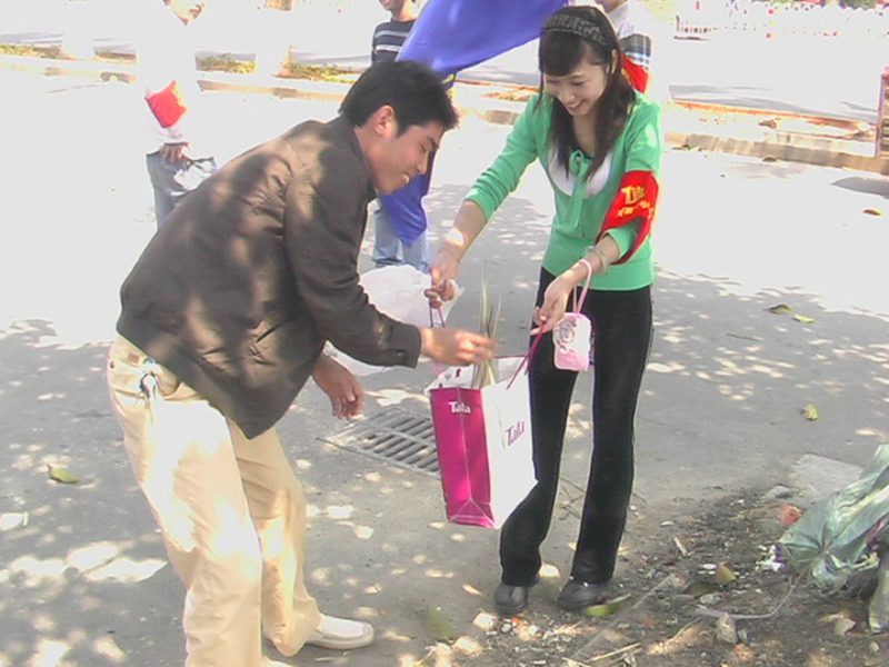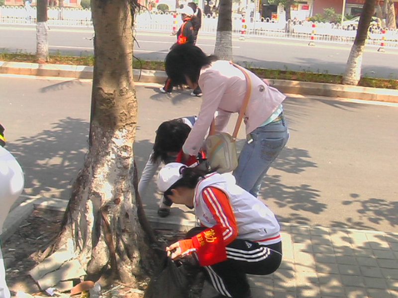 三月的海南是一个阳光明媚,生机勃勃的季节,而三月的海大更是一个讲文明、树新风,让雷锋精神吹遍校园每一个角落的季节。3月4日下午,应学校团委的号召,在学院学工办老师的领导组织下,我院07级学生开展了一次以“学雷锋,献爱心,环保志愿行”的社会公益活动。 活动分三个小组,分别前往白沙门、万绿园及三东路的十字路口进行垃圾清理、打扫卫生和协助维护交通秩序。活动伊始,学工办何佳老师,丁民宜老师及我院青年志愿者在起点草坪举行了出征仪式。在出征仪式上,何佳老师作了动员讲话,并带领志愿者进行志愿者宣誓。 本次活动目的是让学生增强环保意识,发扬雷锋乐于助人的精神。参加活动的各专业学生发扬不怕脏、不怕累的品格,用自己的实际行动践行了雷锋精神,为环境保护、爱心社会奉献自己的一份绵薄之力,展现了较高的个人素养及团队互助的精神风貌,同时也树立了我院学生爱护环境、关心社会的良好形象。