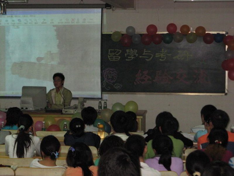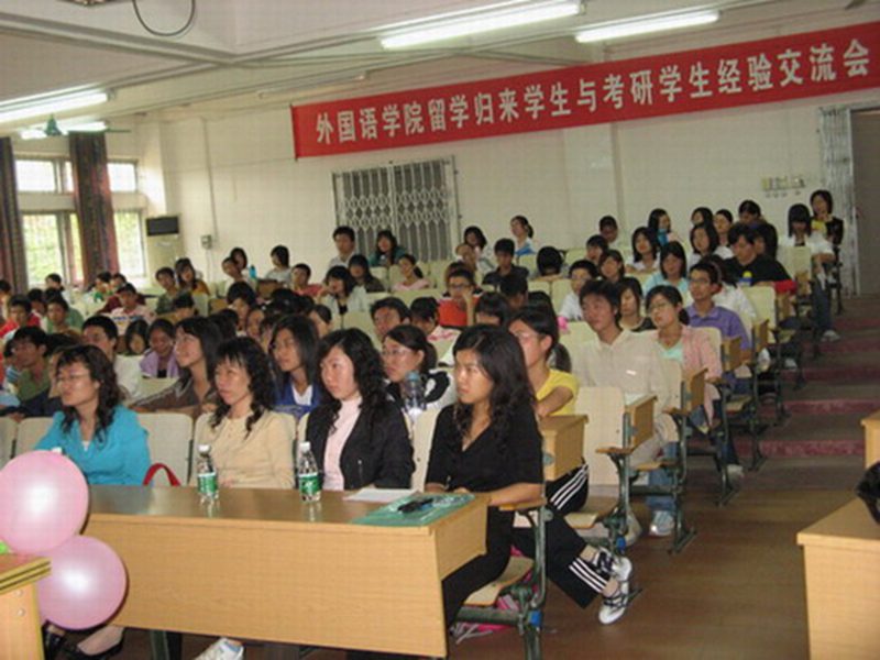 2008年3月25日,由pa集团官网外国语学院团委主办的“外院留学归来学子与考研学子经验交流会”在二号教学楼109多媒体教室隆重举行,学院黄丽芹副书记及李翠霞老师出席了会议。