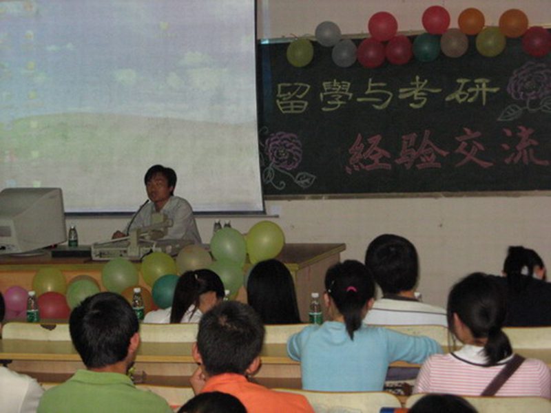 精彩的留学生活经验介绍结束后,我们又进入了考研话题环节,张超哲学长、成新亮学长与唐艳学姐是今年考研学生中的佼佼者,他们分别谈了各自考研过程中的经验与教训,就考研前的准备、如何选专业、选教材、如何有效复习、考研的注意事项等做了详细的讲解,同时也给在场正在准备考研的学生加油打气,鼓励他们要有毅力,坚持不懈地朝着目标走下去。