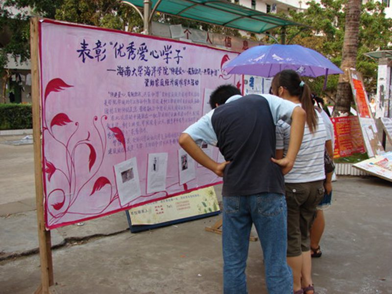通过展版宣传我院帮困助学“优秀爱心学子”
