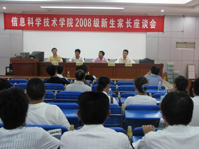 2008年9月5日下午4:30,信息科学技术学院在学院一楼报告厅召开了“2008级新生家长座谈会”,共有百余位新生家长以及部分新生参加了座谈会。会议由学院党委曲涛副书记主持,学院党委陈明宝书记、陈明锐副院长、周开利副院长以及学院团委欧少红书记出席了座谈会。 学院领导分别就新pa集团官网和学院的基本情况、学院本科教学成果、教学基本条件和要求、学籍管理、学生竞赛与科技活动、考研与就业、pa集团官网“文理科”实验班以及学生工作等方面进行了比较详尽的介绍,并就如何帮助新生尽快实现高中阶段向大学阶段的人生接轨、如何确保学生在校期间的正常学习生活、如何加强学院与家长们的沟通联系等普遍关注的问题与家长们进行了深入交流和探讨,形成了广泛的共识。有的家长表示:“本来我们对孩子在这儿上学总觉得不太放心,今天听了各位院领导的介绍和说明,心里就踏实多了。” 新生家长座谈会历时一个半小时,取得了圆满成功。 (注:对参加本次座谈会组织工作的老师和同学们表示感谢!)