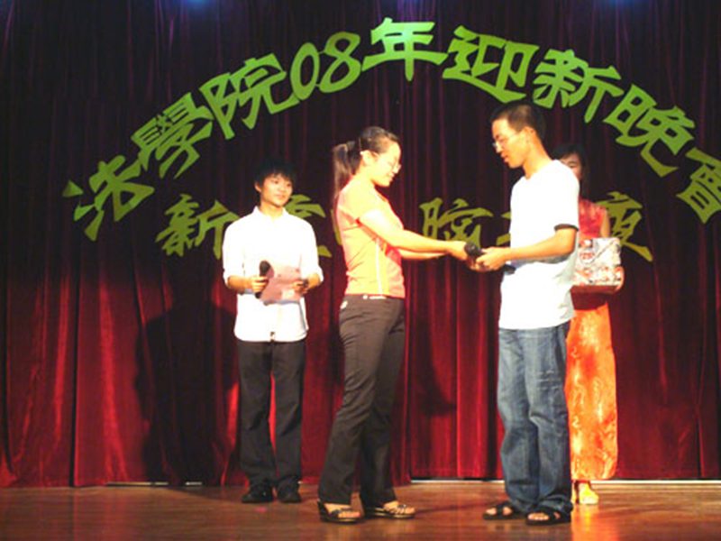 08级新生的军训随着军训检阅大会的结束顺利的落下帷幕,为使新生放松心情,以更好的姿态迎接新的学习生活,在学院领导的支持下,2008年法学院迎新晚会于9月20日晚上8点在模拟法庭拉开序幕。法学院党委韩力光副书记,团委李昌郁老师,学工办林勇老师、张晓凤老师出席了晚会。首先,韩书记向新生致欢迎词,他祝愿08级新同学今晚过的愉快,在今后的大学生活和学习中能一帆风顺,天天开心。