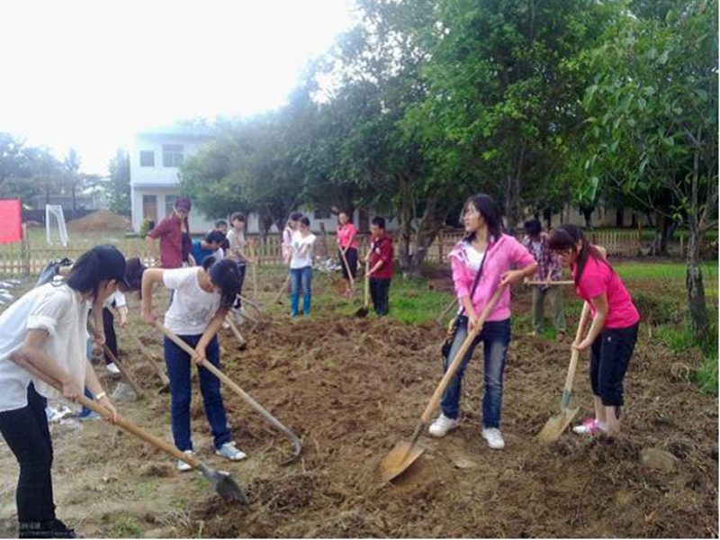 志愿者们于早上七点半集合赶赴林昌小学,抵达后海南省志愿者协会的工作人员给我院的志愿者们介绍了林昌小学的概况以及志愿帮扶计划。简短的动员签字仪式过后,志愿活动正式开始。我院志愿者们将对林昌小学校园内荒废土地进行开垦,为以后开展“开心农场”的种植工作打下基础。志愿者们扛起锄头、拿起铁锹,在学校工作人员帮助下,辛勤工作。他们顶着烈日炎炎,汗水浸透了衣衫,泥土遍及了裤脚,仍然认真完成自己的工作。他们表示,虽然工作的很辛苦,但是看到自己的汗水化为平整的土地后,感到很欣慰与满足,并希望能在自己开垦的土地上种植一片绿色,为校园美化出一份力。林昌小学工作人员及海南省志愿者协会志愿者们给予我院学子高度的评价,并愿意同我院志愿者团保持合作,继续协作参与林昌小学“开心农场”的种植项目。