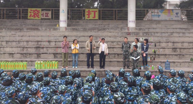 为鼓励农学院2012级新生的军训士气,3月6日上午,学院党委黄承和书记在院办樊俊华主任和学工办全体老师的陪同下到第一田径场看望并慰问了军训新生和教官。