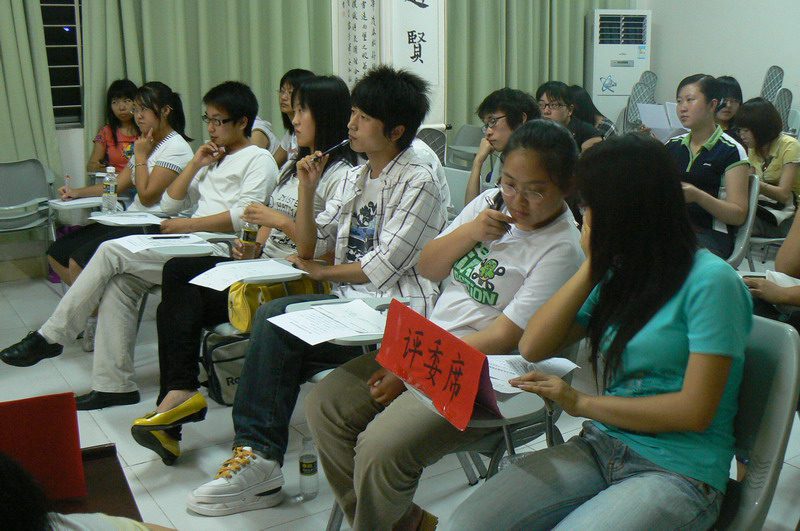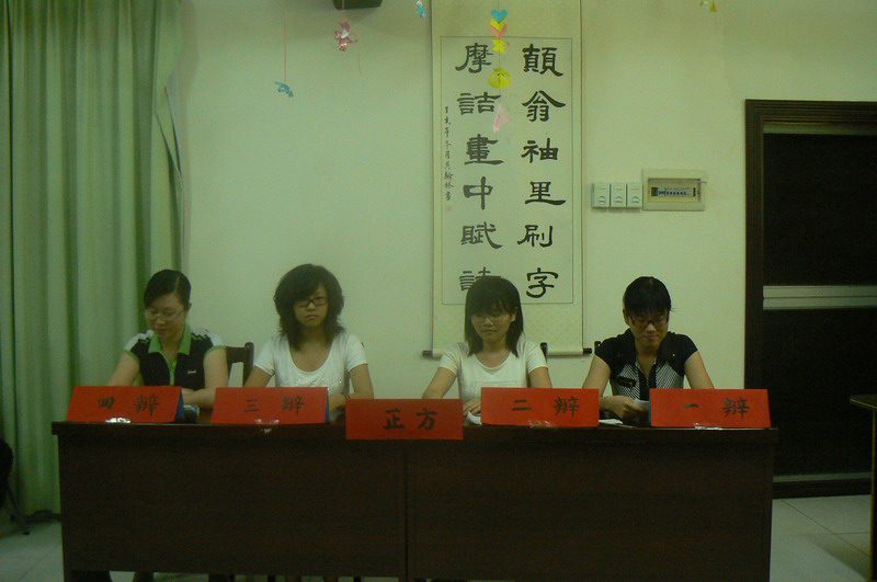 2009年3月18日19点,国交院2009级辩论赛在我院留学生教室(1)举行。来自08级的16位选手参加了比赛,学习部干事陈桂兰担任主席,评委由王云芳、秦宗宇、张飞、吴凡、刘英杰、张清担任,学生会主席佳琳作为嘉宾出席了辩论赛。