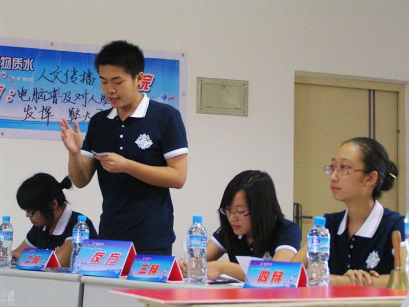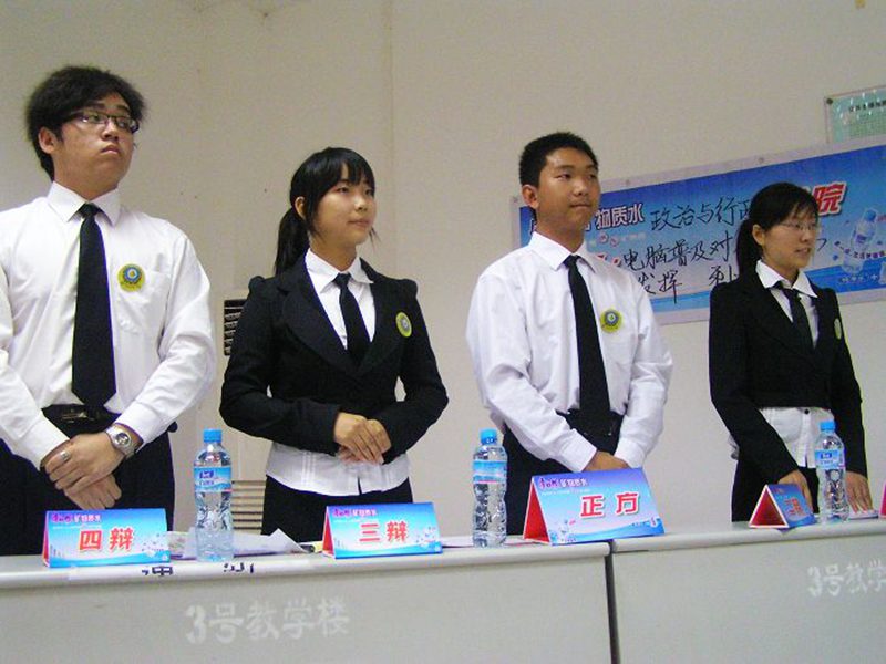4月28日下午4:30,pa集团官网院际辩论赛复赛第四场——人文传播学院对政治与行政学院的比赛在3-311教室举行。本场辩论赛的辩题为“电脑对人脑潜能的开发利大于弊/弊大于利”。人文学院“文韬武略”辩队立足于反方立场,与对手展开了激烈的辩论。