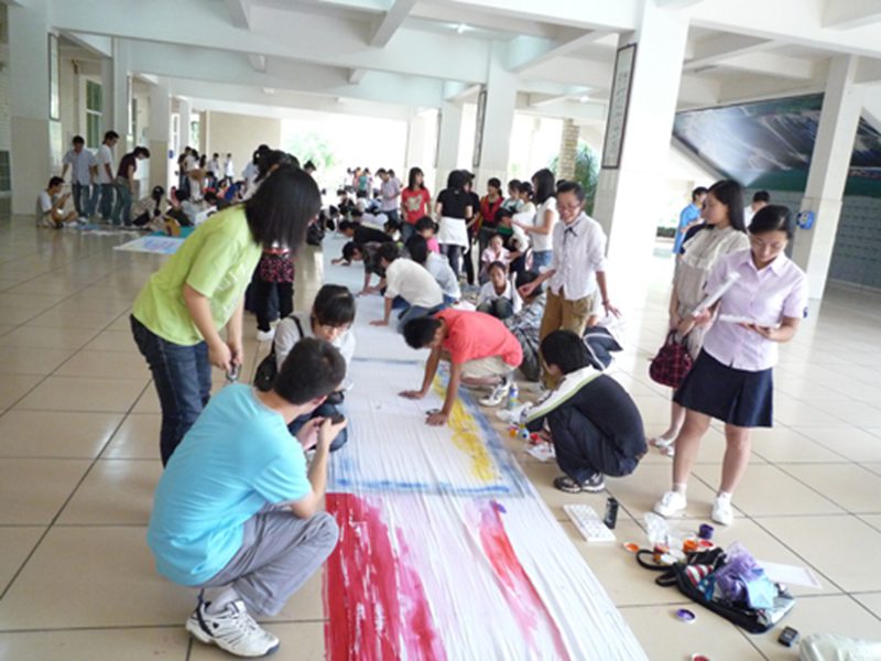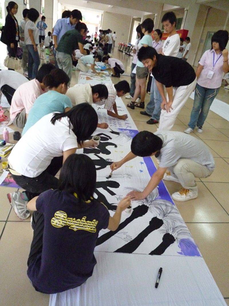 激情洋溢的四月伴随着旅游风采节系列活动的展开更显得别开生面。青春热情的我们伴随着百米书画大赛的展开而更显得活力与多彩。为进一步丰富同学们的课余生活,促进同学们德智体美的全面发展,我院在海南省启动国际旅游岛建设这个大好时机的前提下,由院团委宣传部与学生会宣传部联合举办了此次百米书画大赛。本次活动的主题是百米长卷之“椰岛印象”,旨在通过此次活动使得同学们更加了解海南,支持国际旅游岛的建设。