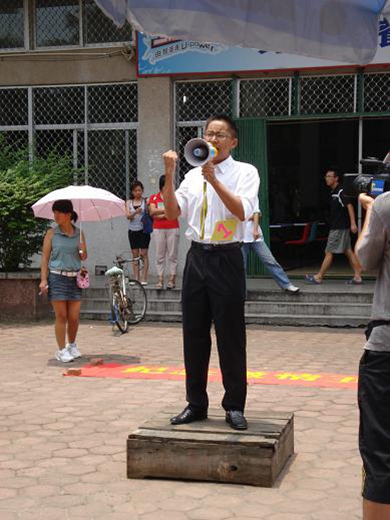 比赛最后,我院李辽宁老师为大家作了点评,说出了我们举办这次比赛的目的——敲一声时代警钟,问一句当代青年。曹艺涛书记也对选手们的表现大加赞赏。经过评委评分和大众评委投票,最终,来自人文传播学院的陈小力同学获得一等奖,我院08级的姜瑞民,夏匠锋分获二、三名,他们获得了证书和奖金,我院07级的张丹丹获得最佳勇气奖。相信,选手们的大胆的路边演说,给所有的路人都留下深刻的印象,在大家的心里,激起了一波波涟漪并……