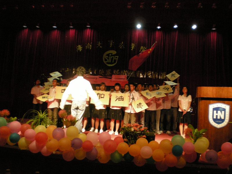 紧接着是班级爱国歌曲歌咏比赛,由来自06、07的六个班级演唱了各自的歌曲。各个班级进场、退场井然有序。同学们极负深情地齐唱出了心中的那份爱国热情。如07生物技术的合唱《黄河大合唱》,保卫家乡,保卫黄河,嘹亮的歌声带着我们的爱国热情充斥在空气中,显得那么有震撼力; 06动科的合唱《让世界充满爱》是那样的感情真挚,感动人心。